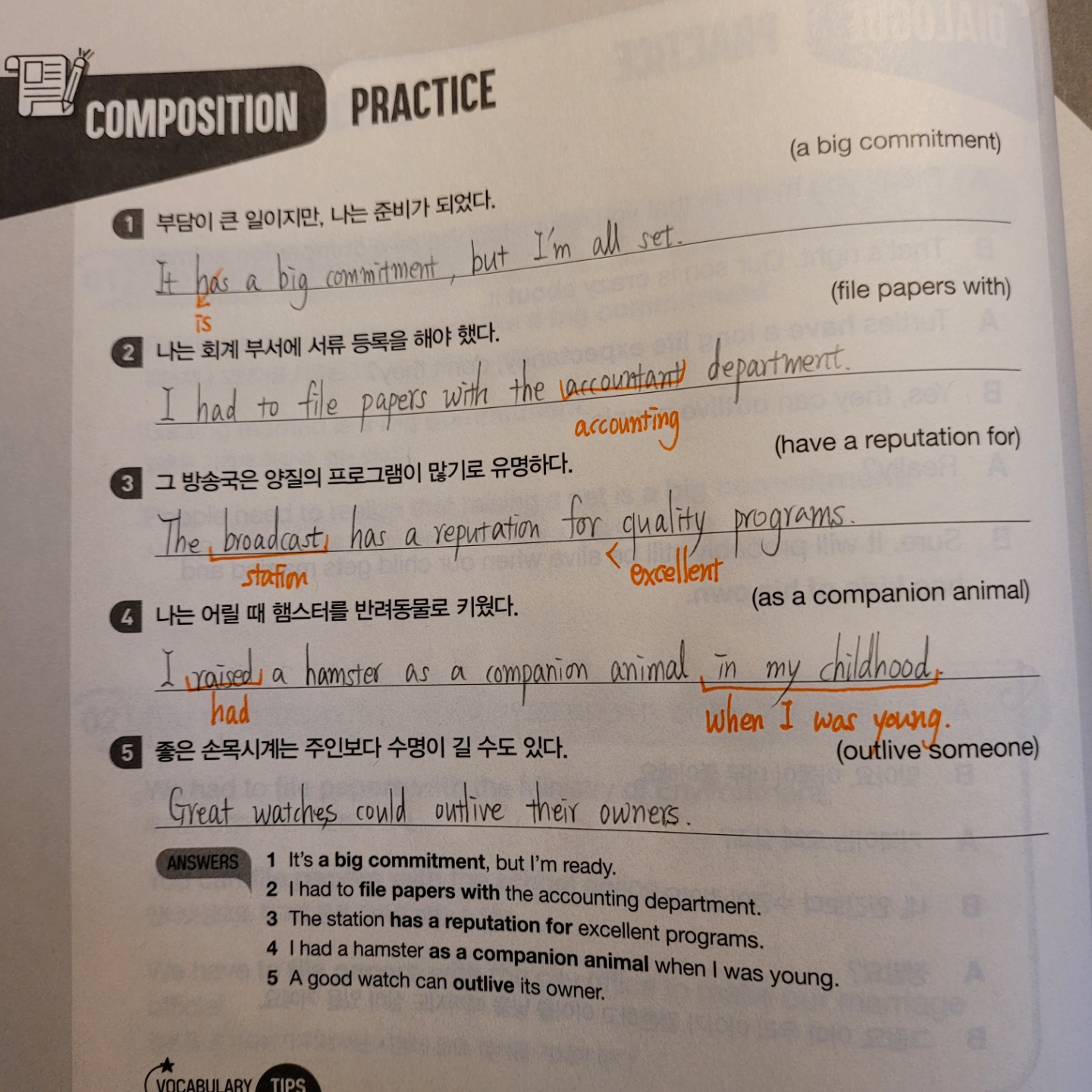 So your answer in red was correct. (쫑쫑: ㅋㅋ 그건 책에 적혀있는 정답이에요. ^^)